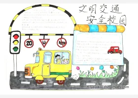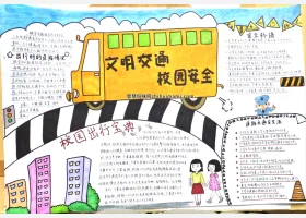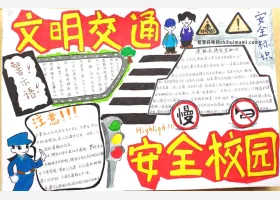 关于文明校园、校园安全、交通安全的手抄报素材,文明交通校园安全手抄报作品图片集。