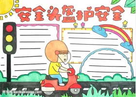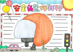 关于头盔、交通安全、法制的手抄报图片,关于安全头盔伴我行主题手抄报教程图片集。