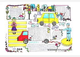 关于交通安全、交通知识、法制安全的手抄报素材,简单漂亮的交通知识主题手抄报作品集。