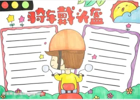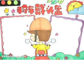 关于法制安全、头盔、交通安全的手抄报灵感,骑车戴头盔的手抄报教程作品图片集。