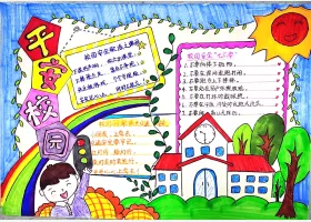 关于平安校园、校园安全的手抄报灵感,学三年级平安校园主题手抄报图片作品集。