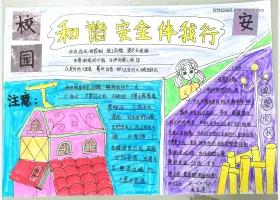 关于校园安全、和谐校园的手抄报模板,“健康成长·和谐平安”校园安全手抄报作品图片集。
