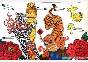 关于虎年小报、春节的手抄报图片,漂亮的虎年手抄报作品集。