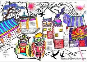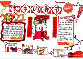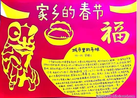 关于家系的春节、新年、春节的手抄报模板,关于家乡的春节主题手抄报作品集。