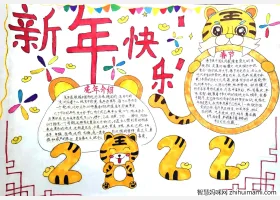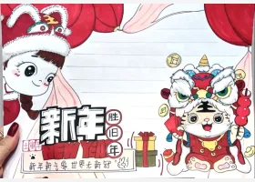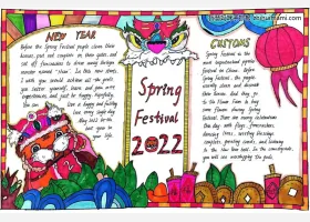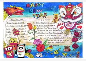 关于虎年、英语、春节的手抄报灵感,关于新年主题英语手抄报绘画图片作品集。