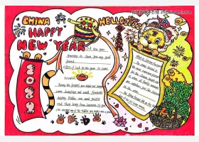 关于新年、春节、英语、模板的手抄报素材关于新年快乐英语手抄报模板图片作品集。