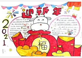 关于新年、春节的手抄报模板,简单漂亮的喜迎新年主题手抄报图片集。