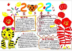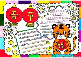 关于虎年春节、节日的手抄报模板,关于小学六年级春节主题手抄报教程图片作品集。