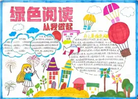 关于绿色阅读、健康成长、读书节的手抄报模板,漂亮的绿色阅读健康成长主题手抄报图片集。