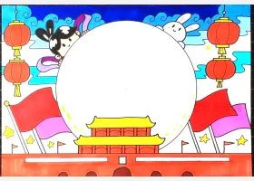 关于国庆节、中秋节、教程的手抄报灵感,庆中秋迎国庆手抄报教程作品图片集。